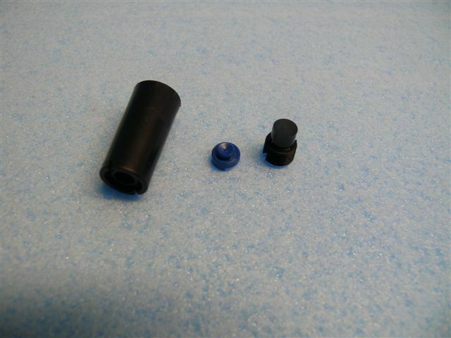 Hieruit komen nu 1 blauw en 1 zwart onderdeel. Indien de sproeiers verstopt zijn door vuil kan men deze gewoon goed schoonblazen (indien mogelijk met een compressor). Mocht men toch kalkhoudend water hebben gebruikt is het verstandig de onderdelen eerst een nacht in azijn of ontkalker te laten weken en dan schoon te blazen. Ook als de sproeiers al langere tijd niet zijn gebruikt is dit aan te raden. Na het schoonblazen kan men het blauwe onderdeel tegen het licht houden en zo zien of het sproeigaatje weer open is. Als dit zo is kan men de sproeier weer in elkaar zetten, indien men ontkalker of azijn heeft gebruikt eerst de sproeier goed doorspoelen / spuiten voordat men hem weer in het terrarium monteert. Gebruik geen naald om het gaatje door te prikken, men kan hier door een beschadiging aanbrengen waardoor het sproeibeeld van de sproeier verandert of de sproeier zelfs geheel onbruikbaar wordt.